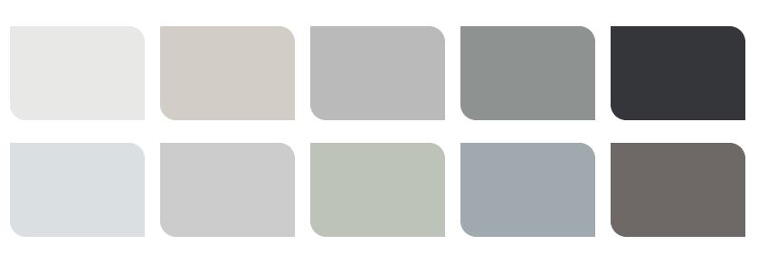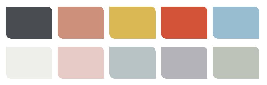 A series of 4 palettes have been created to compliment Tranquil Dawn, it is described to be a fluid tone with a combination of blue, green and grey which works beautifully as a muted tone in many interiors.